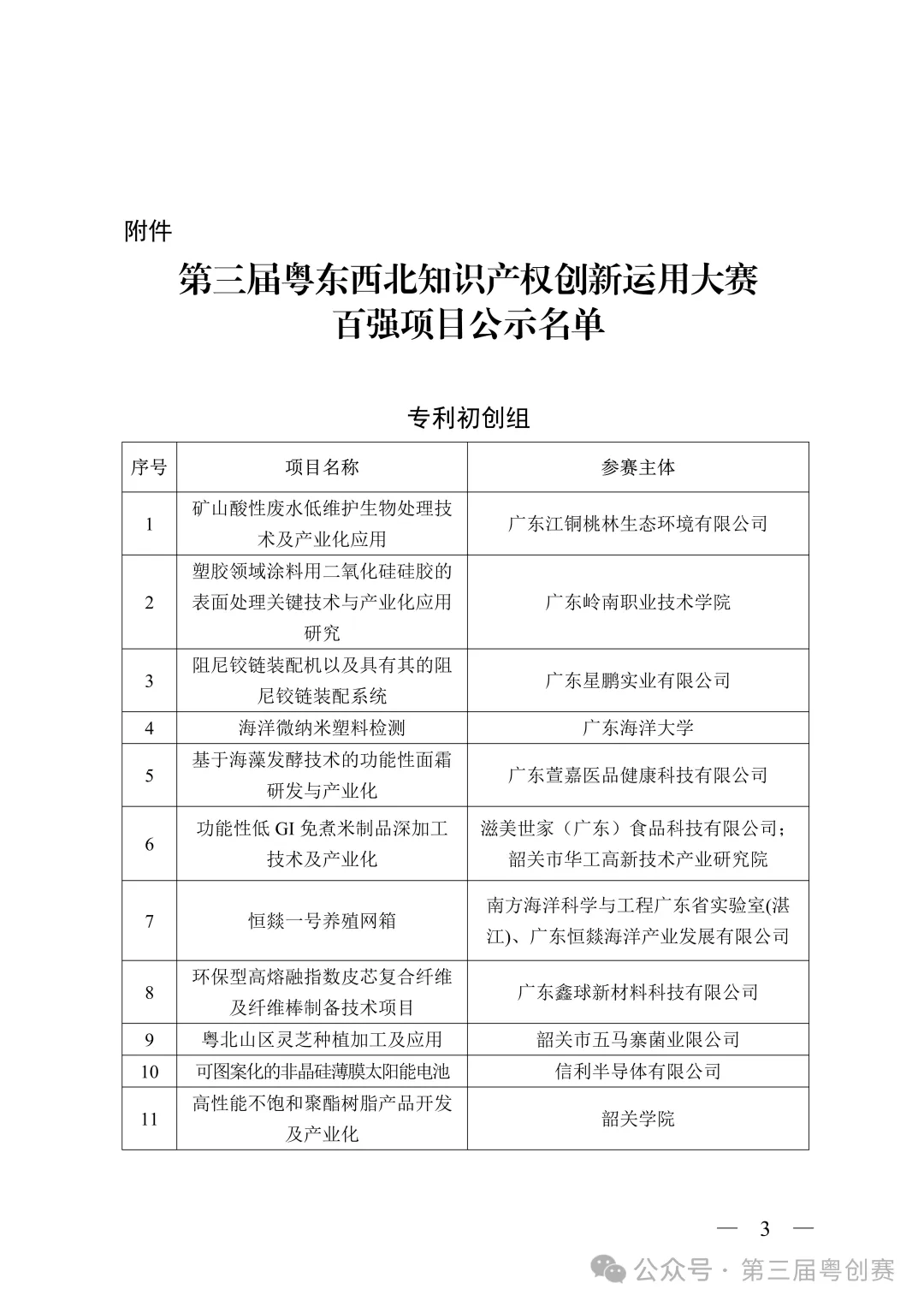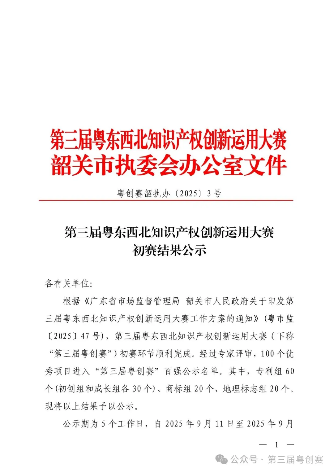 第三届粤东西北知识产权创新运用大赛初赛结果公示